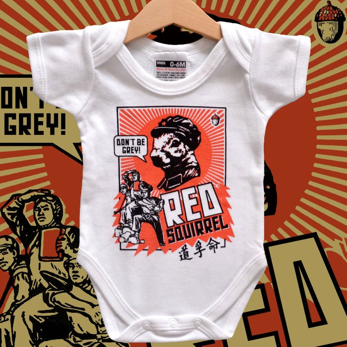 "Don't Be Grey!" Our glorious leader, The Red Squirrel, has spoken. A fun baby gift for revolution and bushy tailed rat loving new parents.